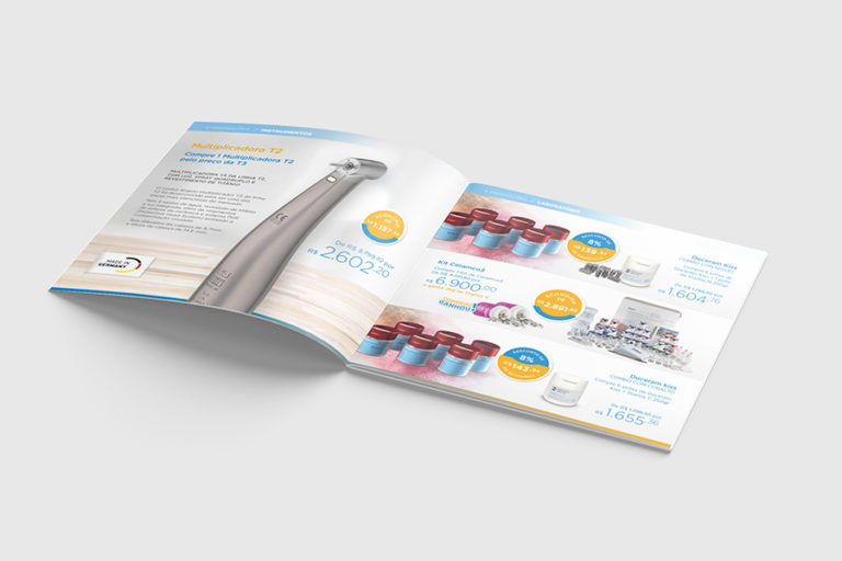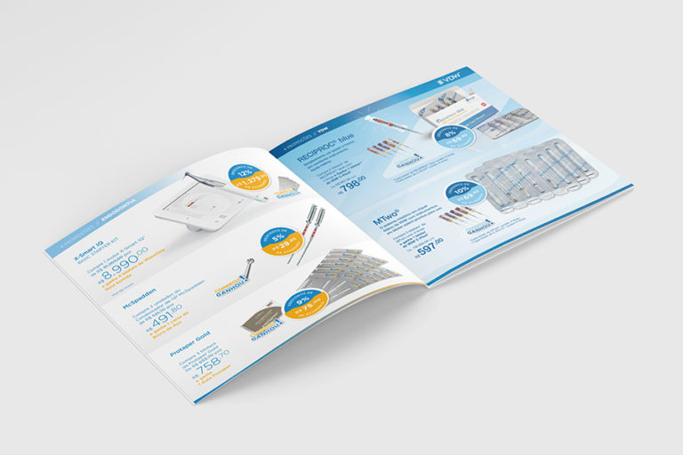 Desenvolvimento de Projeto Gráfico, Diagramação e Fechamento de Arquivo de mala direta promocional para a área de Trademarketing, envolvendo as especialidades em Restauração, Endodontia e Prótese da Dentsply Sirona.